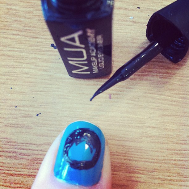 Create an earth design on your thumb nail by drawing a perfect circle with Shade 5 Black Liquid Eyeliner- £1 then repeat Step 1-3 to the centre of the circle. Let this Dry completely. Don't forget to add Shade 17, £1 clear nail varnish in order to keep your Earth nails looking shiny!